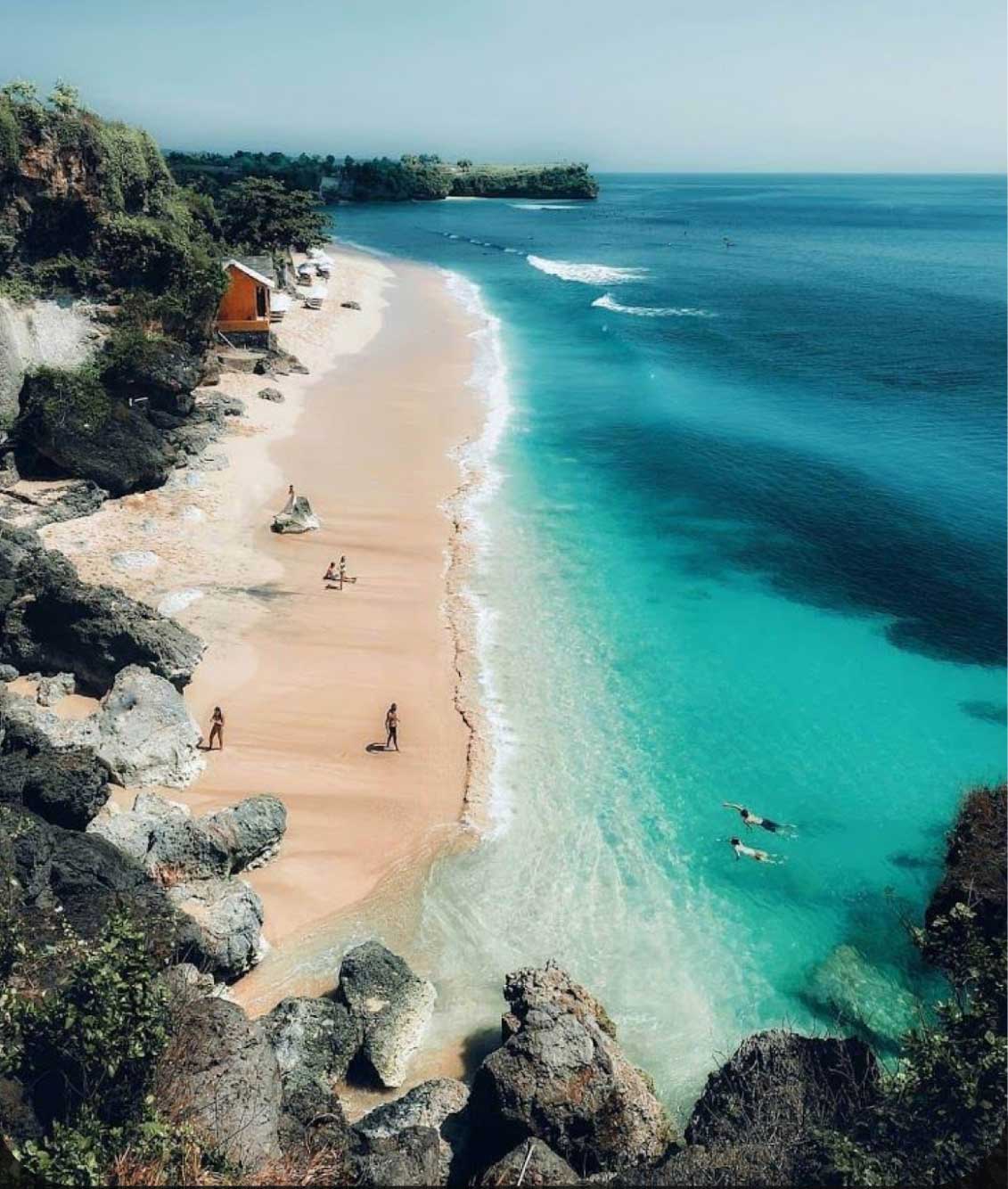 Green Sukabumi Stone — locally sourced volcanic stone known for its natural green hue that gives the water a rich turquoise color.